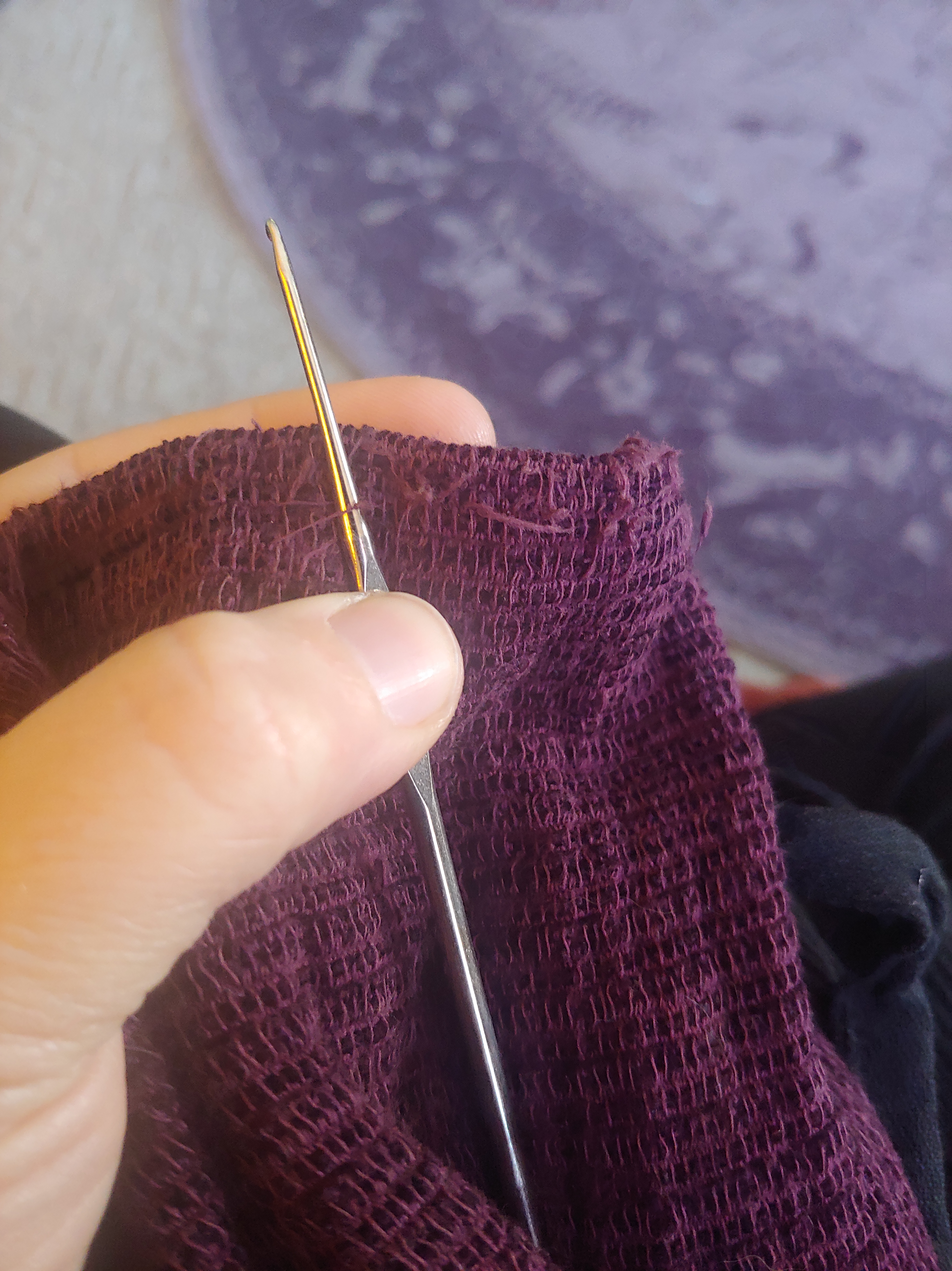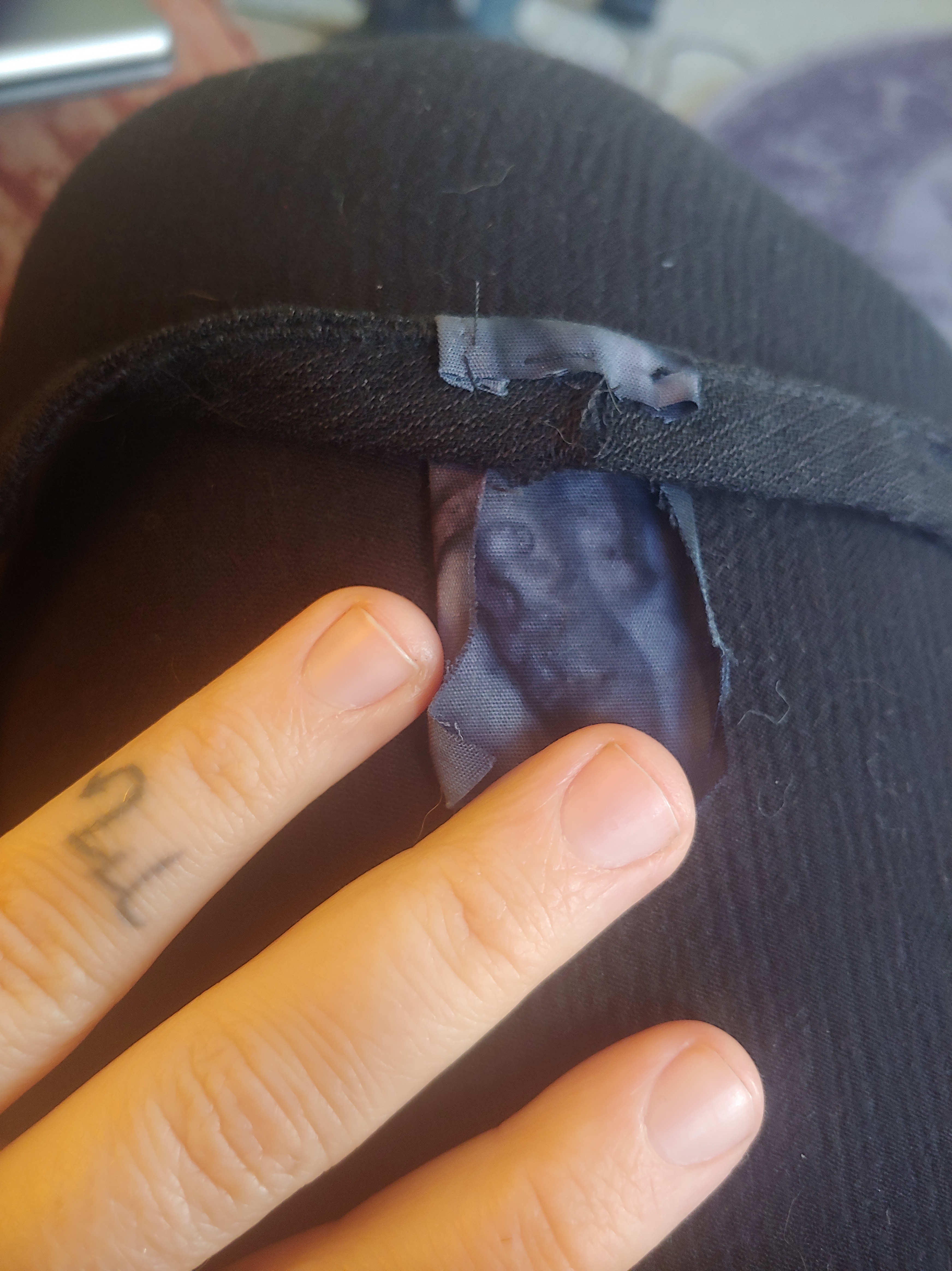 My first step was to finish deconstructing the hem so that I could get the lining onto the sewing machine (this was the only part I could get on the machine, this coat was heavy!) I stitched the split lining back together the best I could fit on the sewing machine, and then hand stitched the rest.